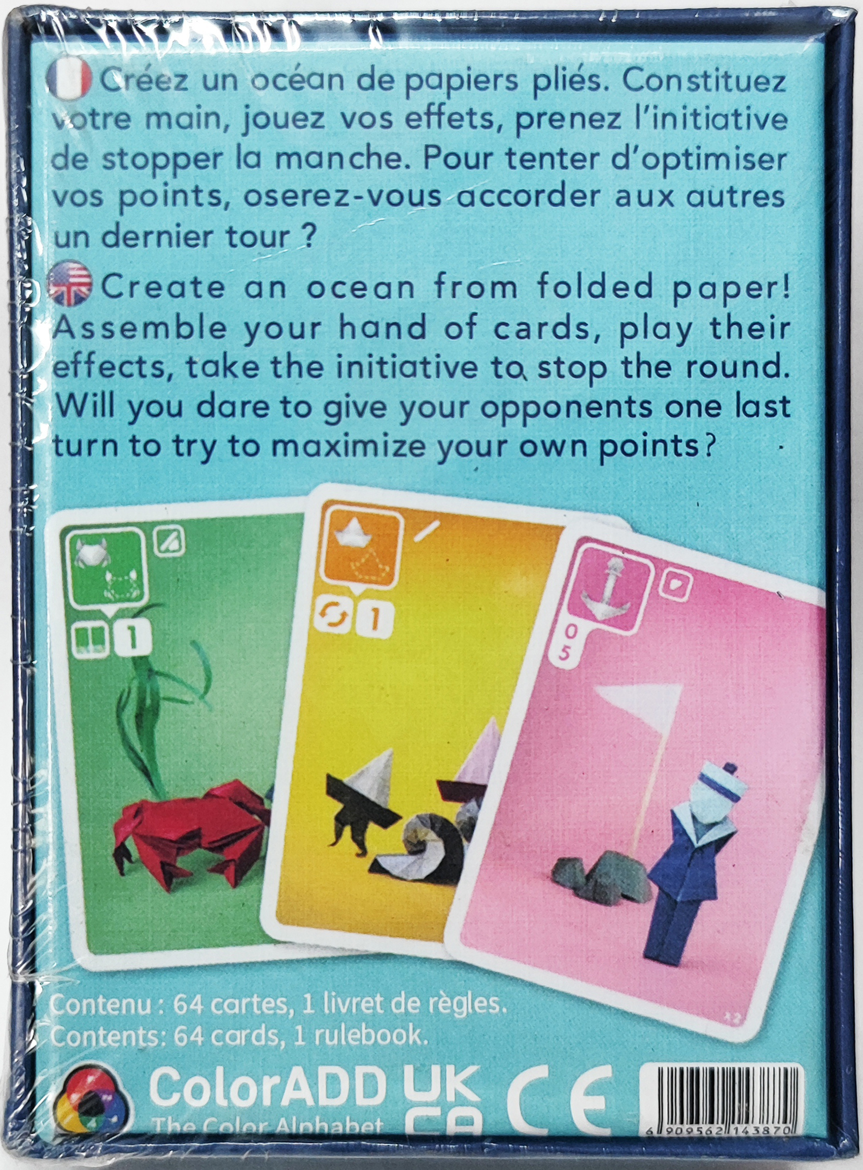 It’s a set collection card game like Rummy. The origami created especially for the game is just the illustrations on the cards.
